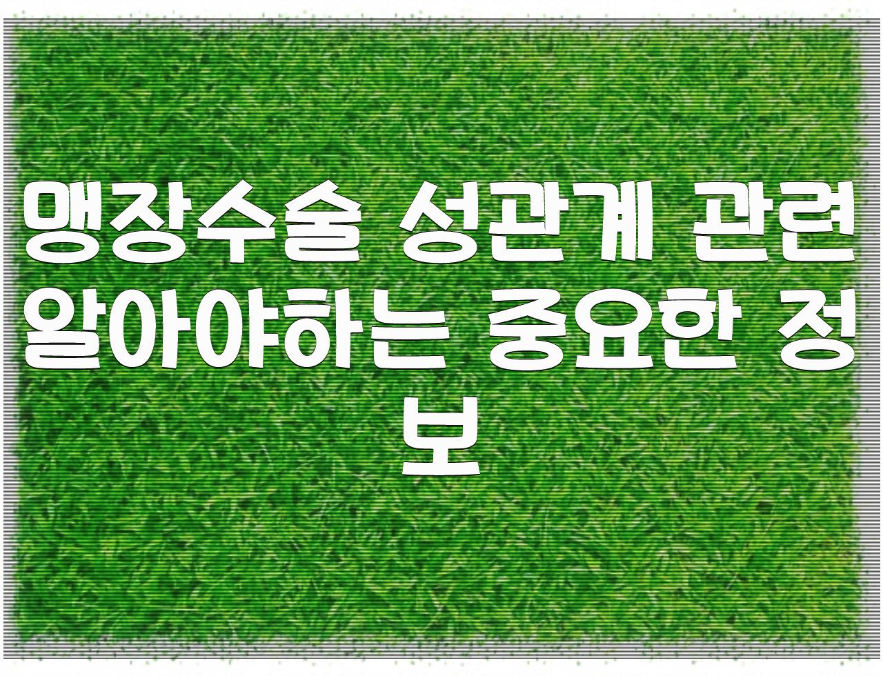 소개드린 정보는 맹장수술 성관계 관련 알아야하는 중요한 정보 알아보았습니다. 좋은 내용이 될수있길 바랍니다.